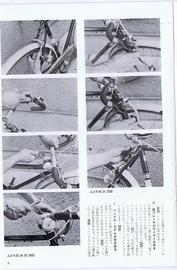 | | Since Howie Cohen's passing, no items are for sale. | | A 12 page soft cover booklet with pictures and instructions of how to disassemble a full size bicycle (touring or racing) so it can be packed into a carry-bag. The book is written in Japanese so at some future time I will include more information (I need the assistance of a Japanese speaking friend). The dimensions are 7 1/8 x 10 1/8 inches, the condition is good. See the picture gallery. |