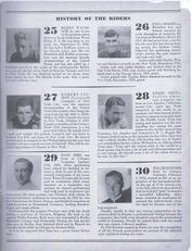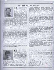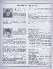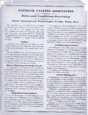 | A VERY GOOD REPRODUCTION IS AVAILABLE TO SELL; I HAD IT REPRODUCED AT A PROFESSIONAL PRINTING CO. A 48-page (including the covers) large format Program for the 57th International 6-Day Race held in New York at the Madison Square Garden from December 2nd to 8th in 1934. The event was sanctioned by The National Cycling Association. The dimensions of the program are 8 1/4 x 10 7/8 inches. Thirty (30) well known international professional racers are illustrated with a short bio of each. The names read like a WHO`s WHO from the history of cycling archives; Fred Spencer-USA, William Grimm-USA, Franco Georgetti-Italy, Norman Hill-USA, Paul Brocardo-Italy, Adolf Schoen-Germany, Avanti Martinetti-Italy, Tino Reboli-USA, Alfred Letourner-France, Gerard Debaets-Belgium, George Dempsey-Australia, Bobby Thomas-USA, Mickey Rodak-USA, Tony Schaller-USA, Franz Deulberg-Germany, Ewald Wissel-Germany, Jerry Rodman-USA, Harold Ruth-USA, Leroy Garrison-USA, Jackie Sheehan-USA, Bobby Walthour-USA, Paul Croley-USA, Bob Lipsett-USA, Eddie Testa-USA, Hans Zims-Germany and Willie Kuester-Germany. The list of officials is another group of famous cycling personalities including; Frank L. Kramer, Arthur W. Ross, Nat Butler, Iver Lawson, G.J. Abieneste, Patrick Mulvey, William Drake, Charles Ertz, Fred Fesselmeyer, Joseph Abell, E.M. Galloway, Lewis Heit, Thomas Lynch, Joseph Grimm, Frank Shaw, Jack Roden, Herman Hillenbach, L.A. Fraysse, Frank Small, George Scofield, Emile E. Fraysse and several others. The program contains articles about bike racing in the day, and the history of 6-day racing. Records for past races from 1924 through 1934 are listed as are Past Records for Every Hour in the years 1913~1917. Some of the adverts feature large photos of some famous racers. This is enjoyable reading and an important piece of research material. The original Program is in poor condition with nicks and tears on the edges of some pages as you can see from these scans of the reproduction. However the text can be clearly read on all pages. The original Program is from the Bill Bina Collection.| Picture Gallery for this Item (click images to enlarge) |
