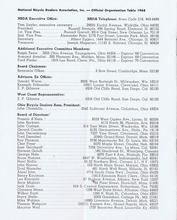 Page-10 listing many of the Bicycle Dealer members who were active in the administration of the NBDA at the time: Tom Sayler, Russell Stemple Russell Garrett, Alexander Petri, Albert Eggers, Joseph Magaraci, Ralph Teets, Armand Antolini, Ford Pleifer, Benjamin Olken, Donald Wares, Kenneth Schneider, Z.P. (Zip) Gilmore, John Chamblin, Francis A'Hern, John Barbieri, John Carlson, Gerald Casale, John Derrenkamp, Fred Dzendzel, Ray Florman, Chet Fryer, Sam Gerchgall, Norman Gooch, George Hale, Bruce Hansen, Harri Hollis, John Hoover, Errol Hostetler, Ansel John, Benny Kaufman, Lee Klarsfeld, Boris Migliori, Jack Oran, Clarence Mann, Wilbur Scott, Harry Stello, Mike Walden, Thomas Walquist and Maurice Weil. |