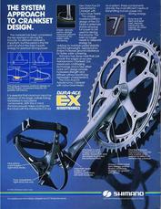 Page-4, an advert for Shimano's Dura-Ace Aerodynamics cranks & pedals. The pedals featured toe clips & straps in 1980. |