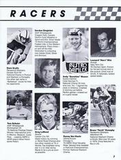 Page-7, with profiles of eight (8) different competitors; Dave Grylls, Tom Schuler, Gordon Singleton, Greg LeMond, Andy 'Sunshine' Weaver, Danny Van Haute, Leonard 'Harv' Nitz, and Bruce 'Torch' Donaghy. |