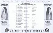 Pages 12 & 13 (the centerfold) of the 1961 Race Program listing the names, numbers, colors & Country of the riders in this 6-day bike race. These pages include an advert for U.S. Royal Bicycle Tires. A professionally printed reproduction of this Race Program is available to sell. Use the Contact button on this web site if you are interested in obtaining a complete reproduction of the Program. |