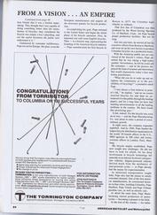 Page-79 with pictures taken inside the Columbia factory and some of the executives who participated in the Centennial celebration; John Rhodes, Harry Rainey, Dieter Kasgin, Richard Armstrong, Ken Howard, Emil Stang, Richard Huntoon, Bill Laighton, Dick Saloomey, David Johnson & Pat Flahive. |