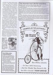 Page-65: (1) A continuation of the history of Pope & Columbia. (2) An article about locating a granddaughter of Col. Pope, Mrs. James L. Lytel. (3) An article about Edward Berry Jr. who in 1971 rode a Columbia High-Wheel bicycle on a 3400 mile trip cross country in 48 days. (4) Congratulations to Columbia from Hunt-Wilde & Stewart-Warner. |