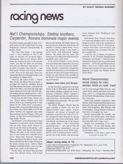 Page-104, the first page of RACING NEWS, a regular section. Named are; Wayne & Dale Stetina, Mark Pringle, Dave Ware, Connie Carpenter, Barbara Hintzen, Jane Buyny, Mary Jane Reoch, Heidi Hopkins, Robin Deely and many others. |