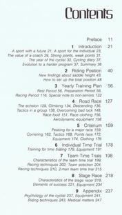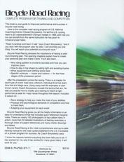 | | Since Howie Cohen's passing, no items are for sale. | | If you are really serious about bicycle racing, this book is for you. The techniques described and illustrated will not only help you reach your full potential for the current season, but enable you to race at a high level for many future years. The authors, Eddie B and Ed Pavelka are high quality, well respected professionals in their fields. A soft cover book containing 275 pages of exciting to-the-point information, photographs & illustrations. The dimensions are 8 3/8 x 11 inches, the condition is good. The 1st printing was in 1985; there were three subsequent printings. See the picture gallery and click on the thumbnail pictures to see a larger `readable` image. |