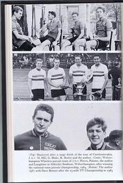 TOP (L-R) D.Hill, G.Blake, K.Butler & Hugh Porter, after a stage finish at the Tour of Czechoslovakial CENTER (L-R) Wolverhampton Wheelers Pursuit Team, Pierce, Painter, Porter & Langshaw at Aldersly Stadium, Wolverhampton, after winning the 1964 National Pursuit Championship. BOTTOM (L-R) Hugh Porter & Dave Bonner after the 1963 25-mile TT Championship. |