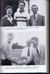 TOP: Hugh Porter with his mother & father after winning his first national Pursuit Championship at Fellowfield in 1963. BOTTOM: Hugh Porter receiving his 2nd place award from Jacque Anquetil for the 1964 10-mile race. |