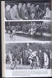 TOP: Roy Cromack and the 1964 British Olympic Track Team (Porter is 2nd from left). CENTER: Hugh Porter waving triumphantly as he wins the 1966 Harp Larger G.P. BOTTOM: Porter willing the 1965 Brighton to London road race. Goz Goodman is coming in 2nd. |