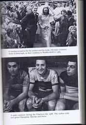 TOP: The 1965 wedding reception for Hugh Porter and his bride (Olympic swimmer, Anita Lonsbrough) at Huddersfield. BOTTOM: Hugh Porter between two great champions, Merckx & Sercu, during the 1968 Charleroi Six. |