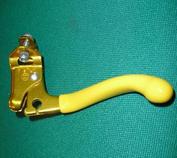 | | Since Howie Cohen's passing, no items are for sale. | | This is one of the NOS (New Old Stock) Brake Lever Sleeves for the BMX 2-finger brake levers that Everything Bicycles sold to Bike Shops. It is available in red or yellow. The sleeve slips onto the brake lever with the help of warm water; when the water dries the plastic sleeve is like molded onto the lever. It fits levers which are unbent or have been bent. These were produced in the early 1980`s. This image shows the sleeve mounted onto a Dia-Compe anodized gold bent lever. See the picture gallery. |