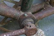 A close-up view of the left side of the BB tube with crank & BB parts |