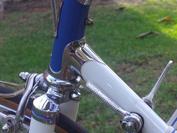 | | This 1958 Frejus Torino (posted on CR in October 2010) was recently restored (with a few upgrades) for the original owner, the father of Marcus Thiebaux in So-Cal. The splendid paint and transfer work appears to have been done by Cycle Art. In the 1950`s and early 1960`s Frejus bikes were imported to Los Angeles by Don, the then owner of San Gabriel Bike Shop. Marcus suspects that this bike did not come through Thomas Avenia, and he would like more information about the bike. |