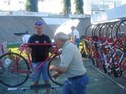 2007 old pro Fritz Bruhlman (foreground) wrenching for a young rider at the track in Zurich/Oerlikon. Visit Fritz's web site at www.nati-mech.ch |