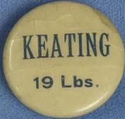 A Keating celluloid lapel stud button which is in this collection |