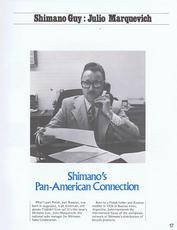 | | Since Howie Cohen's passing, no items are for sale. | | This is the 1975 Winter issue of Shimano World, Vol-3, #4. Shimano World magazine is an in-house publication giving the bicycle trade information about Shimano, its products, its customers and industry trends. This issue contains 20-pages plus the 4-covers. It is interesting reading and valuable reference material relating to products, people and industry trends at the time. This issue has a data-sheet on the new Shimano POSITRON Derailleur System as well as 3-pages devoted to Shimano`s new FF System (Front Freewheeling System). There is also an article about friend Julio Marquevich including some pictures and his bio. See the picture gallery. |
