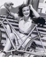 c.1940's A Hollywood Starlet posing with a Norman brand bicycle. |