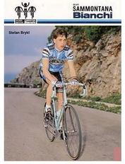 | | Since Howie Cohen's passing, no items are for sale. | | An original marketing poster advertising Bianchi Bicycles. Stefan Brykt was a stage winner in the 1986 Coors Classic Morgul-Bismark bike race. Brykt was born 04-07-1964 in Mora, Dalarna, Sweden. He enjoyed a very successful but short professional cycling career. In 1986 he was sponsored by the Italian Team SAMMONTANA. Poster photo by Vern Walker. The dimensions are 18 3/4 x 26 3/4 inches. |