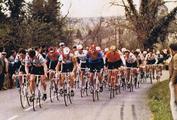 | Phillippe Renoux was born in France in 1960. He started cycle racing in 1975 as a junior where he finished in the top five in the first few races in which he competed. He rode with club A.C.Baignes-Barbezieux in 1983 & 1984. He claims 46 total victories in his career. My Swiss/Tex friend purchased some jerseys and racing memorabilia from Phillippe and kindly passed some if it to me; see the picture gallery. This framed photo shows Phillippe at the start of a European race (wearing the Bouriaud cap) and there is ASPTT printed on both sleeves of his jersey.| Picture Gallery for this Item (click images to enlarge) |