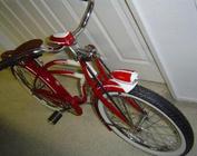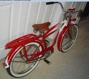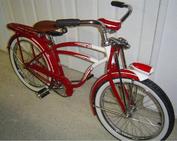 | | Since Howie Cohen's passing, no items are for sale. | | This is a genuine 1951 Schwinn 20x2.125 Juvenile model that has been restored by Luke DeNitto who took some liberties with his choice of custom components and accessories (spring fork & Enwell electric horn). All of the other parts are genuine NOS Schwinn. The bike looks like a mini Hornet with a springer! The bike is an absolute dream and is not available for sale unless you are ready to pay an obnoxious price. If you want to contact Luke just send me an email & I will forward it on to him. See the picture gallery. |