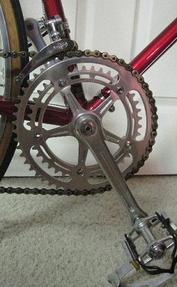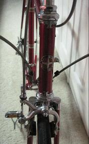 John wasn`t quite ready to part with the 1969, but after a few hours of purusing his collection, I decided I wasn`t going home without the 77. The frame`s chromed lugs, Campy components, hubs, handlebars, spokes and wheels were shining just as they were over 34 years ago. John is not known for mainstream selling. He just realizes that he can`t keep them all, and makes it his mission to place the right bike with a new rightful owner. Before I left with my new Red beauty, he promised me the 69 in the very near future. This 1977 bike is `Not For Sale` at any price, just here on your website for all to enjoy.