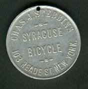 1898.c SYRACUSE BICYCLES-CRIMSON RIMS Advertising Medallion by Chas. J.Stibbins of NY