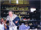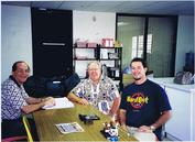 Howie posing with one of the employees who is taking an order from a dealer by phone. Notice the large inventory of product on the pallet racking in the background and the order of parts & accessories on the table waiting to be packaged and shipped. |