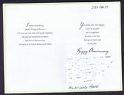 | | Since Howie Cohen's passing, no items are for sale. | This is Howie`s Aniversary card to Kay for our 31st Wedding Anniversary. The inside message is; I enjoy everything about being with you the way we can talk and laugh together, the special moments we share, the fun of discovering all there is to know about each other. . . . . You make me very happy, and I`m so glad we`re together because your love brings so much joy to my life. There is an additional hand written message inside from Howie to Kay.