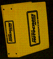 | | Since Howie Cohen's passing, no items are for sale. | | A vinyl binder for 12 issues imprinted with BICYCLE MOTOCROSS ACTION MAGAZINE on the front cover and spine. 12 insert wires are included for safely holding 12 issues (one year). This photo illustrates only 3 magazines inserted and 3 additional insert wires (6 of the holes for insert wires are empty). See the picture gallery for the imprint design. This binder is yellow color, there are also some white binders. |