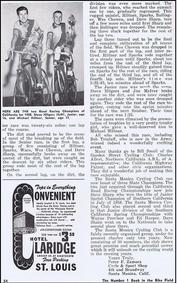 Page-54, an article authored by Peter Zamora of Cycle & Sport Bike Shop of Santa Monica, CA. Pictured and mentioned are Mike Hiltner and Steve Hilgers. Also mentioned in the article are; Sparks, Ballinger, Wes Chowen, Jim McIver, Bob Tetzlaff, Bill Small, Charles Albert, Wayne Provisor, Ed Harper & Dave Sharp. |