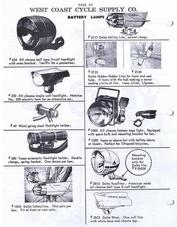 Page 65 of the 1962 WCCSC (West Coast Cycle Supply Co) catalog illustrating six Delta lights that were stocked and distributed to bicycle stores. |