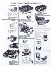 Page 66 of the 1962 WCCSC (West Coast Cycle Supply Co) catalog illustrating two Delta lights that were stocked and distributed to bicycle stores. |