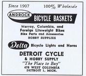 An advertisement in the 1957 Bicycle Journal magazine by Detroit Cycle, including the Delta logo |