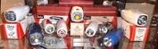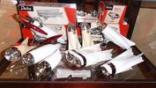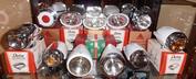 A view of the entire attractive 8-shelf cabinet filled with some of David's collection of Delta lights & horns. There is at least one other brand of light included; I noticed a Seiss Rocket light on the top shelf. David is a collector & historian of Delta lights & horns. If you have questions about Delta Electric products David can most likely answer them. If you have any information, catalogs, brochures and/or Delta Electric products, David is interested in acquiring it/them. Contact me for David's email. |