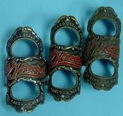Showing the comparison of three badges in different conditions. Starting right to left; (1) the original condition of the badge in my collection when I opened the box, (2) after some light cleaning and rubbing using vinegar and a soft paper towel, and (3) after more vigorous cleaning using vinegar and a small brush.