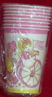 A stack of 8 party plates with the image of two girls on a high-wheel tricycle. These plates are part of a 2-piece set which also includes 7oz drinking cups. See the picture gallery.