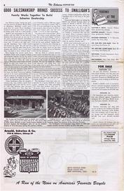 | | Since Howie Cohen's passing, no items are for sale. | The Schwinn Reporter publication was produced monthly by Arnold, Schwinn & Co starting in the early 1950`s. It was the Schwinn House Organ, full of information about the Company, its products, its Franchised & Authorized Dealers and the bicycle industry. The Reporter was written specifically for Schwinn Dealers and was mailed to them each month. Whether it`s Cruisers, Krates, Sting Rays, Paramounts or Collegiates, you can see the evolution of the Schwinn bicycle line and the company by simply reviewing the pages. Each Schwinn Reporter is an extremely valuable piece of reference material. The Schwinn`sters written about in this issue include: Henry Samuelson, Harry Clausen & Chris Hansen (all three of Chicago Cycle), Charles McCormick, M/M Ben Hanoski with sons Roman & Larry, Bill Chambers, Harry & Edward Swidler of Art`s Bike Shop, Evert Smalligan and others. There are many more articles and people to be named in this issue; when time permits I will come back to it and embellish this posting. This issue contains 8 pages. The dimensions are 10 x 17 inches. See the picture gallery. |